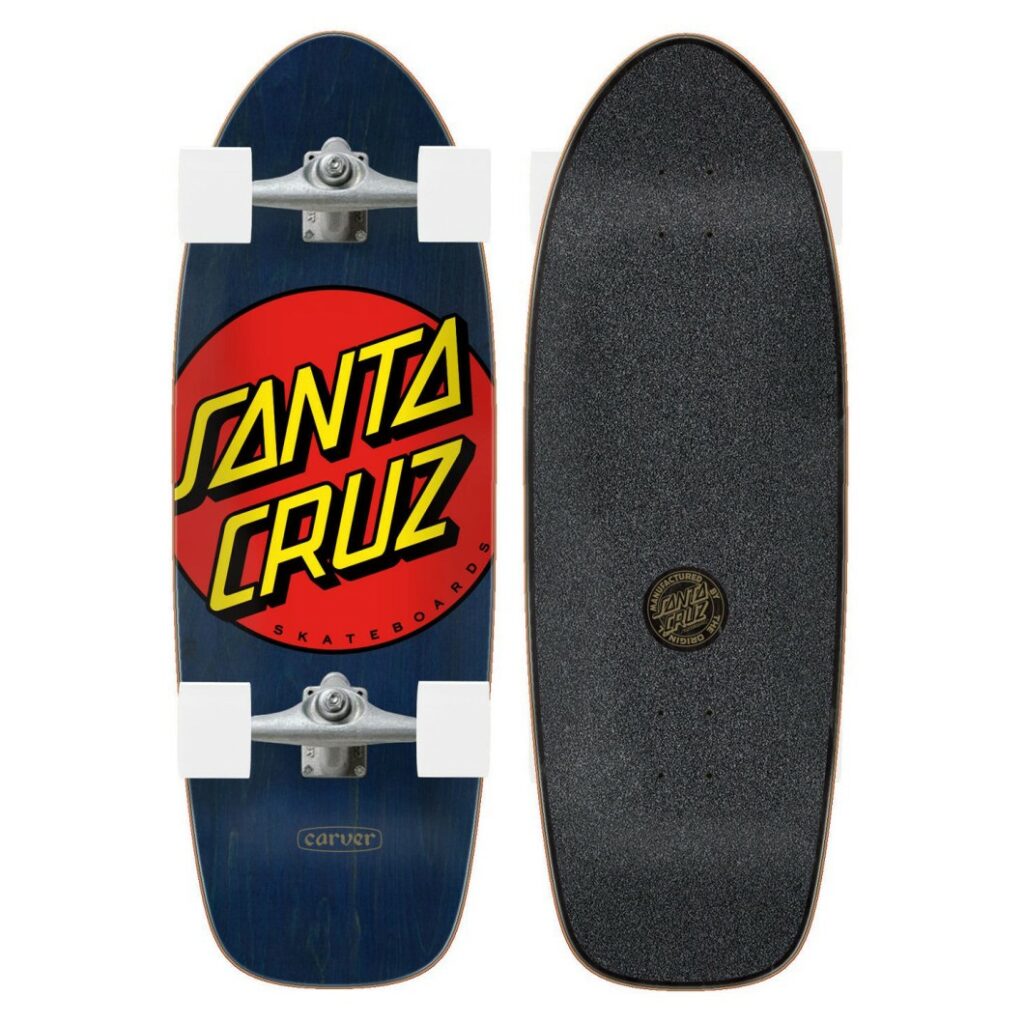 A día de hoy, Santa Cruz Skateboards es una marca que produce múltiples productos como camisetas, gorras, mochilas, tablas de skate, skateboards completos y ahora también Santa Cruz SurfSkates.