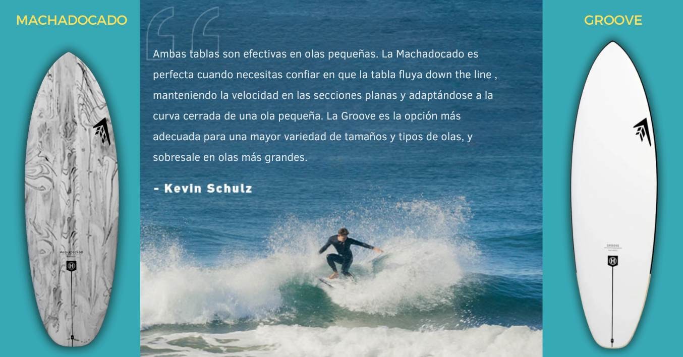 En el vídeo que tienes aquí debajo, Kevin Schulz se mete al agua con la Groove y con la Machadocado, para comparar sensaciones en olas de 2–3 pies con secciones rápidas y algún mini tubo.