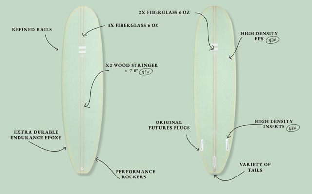 - Acabado en resina Endurance Epoxy: glaseado con una resina de altas prestaciones que sella la tabla y aumenta su durabilidad.